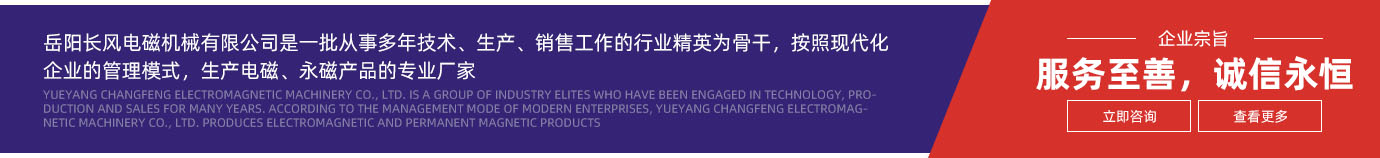 岳陽長風(fēng)電磁機(jī)械有限公司是以原岳陽起重電磁鐵廠一批從事多年技術(shù)、生產(chǎn)、銷售工作的行業(yè)精英為骨干,按照現(xiàn)代化企業(yè)的管理模式,經(jīng)過資產(chǎn)重組而組建成立的新型科技型股份制企業(yè)。工廠既繼承了原岳陽起重電磁鐵廠三十多年來積累的電磁產(chǎn)品開發(fā)與生產(chǎn)的理論和實(shí)踐經(jīng)驗(yàn),并加以開拓創(chuàng)新,發(fā)揚(yáng)光大;又改變了原國有企業(yè)陳舊的管理制度與作風(fēng)。企業(yè)如朝陽噴薄,正不斷發(fā)展壯大,具有較好的發(fā)展前景。